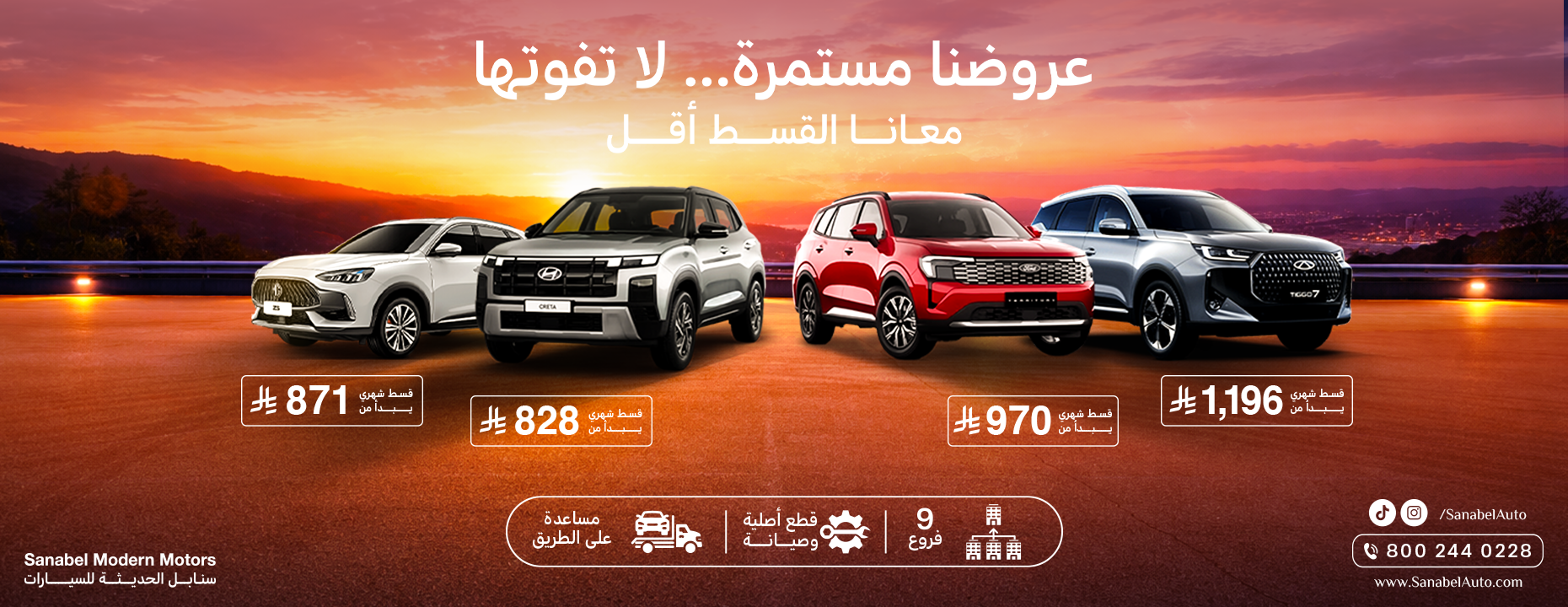 ارتقِ بتجربتك مع أقوى عروض السيارات العائلية! تفتح لك سنابل الحديثة للسيارات آفاقاً جديدة لامتلاك سيارة SUV متعددة الاستخدامات. سواء كنت تفضل الأناقة العصرية في MG ZS أو القوة والرحابة في فورد تيريتوري، نقدم لك عروضاً استثنائية تجمع بين الأداء والسعر المثالي. أقساط بمتناول اليد: ابدأ رحلتك بقسط شهري يبدأ من 828 ريال سعودي فقط. جودة مضمونة: نلتزم بتوفير قطع الغيار الأصلية وخدمات الصيانة الدورية. أمان على الطريق: خدمة المساعدة على الطريق متوفرة لدعمكم في كل الأوقات. خدمة واسعة: ننتظركم في فروعنا الـ 9 لخدمتكم بشكل أفضل.