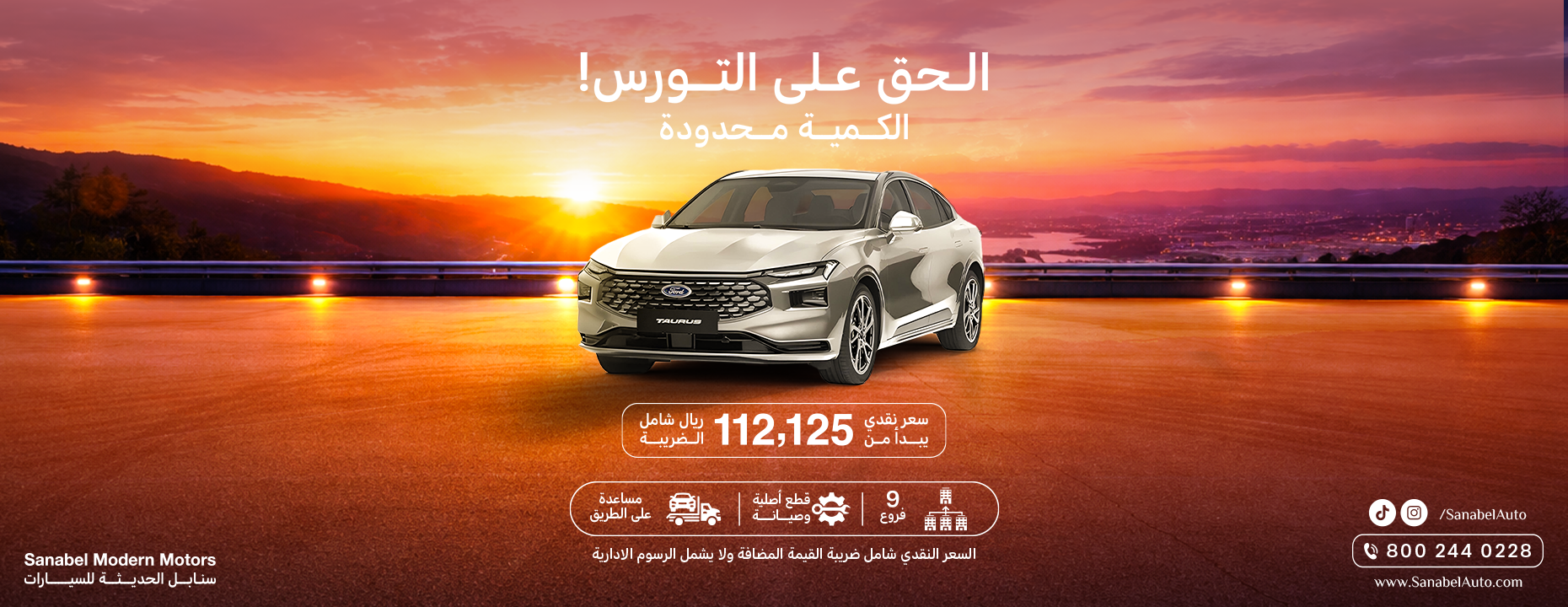 الحق على التورس! الكمية محدودة جداً لدى سنابل الحديثة للسيارات. امتلك سيارة فورد تورس الآن بسعر نقدي يبدأ من 112,125 ريال سعودي (شامل ضريبة القيمة المضافة). العرض يتضمن صيانة احترافية، قطع غيار أصلية، وخدمة المساعدة على الطريق لتستمتع بقيادة واثقة وفخمة.